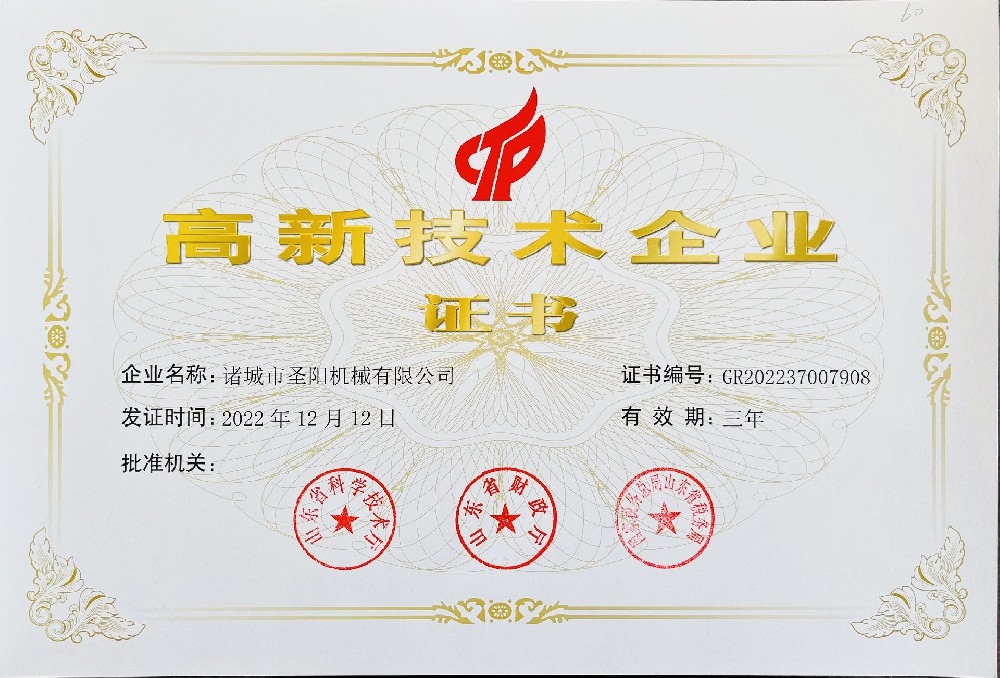 喜報!諸城圣陽機械被評為高新技術企業喜報!諸城圣陽機械被評為高新技術企業查看詳情 -